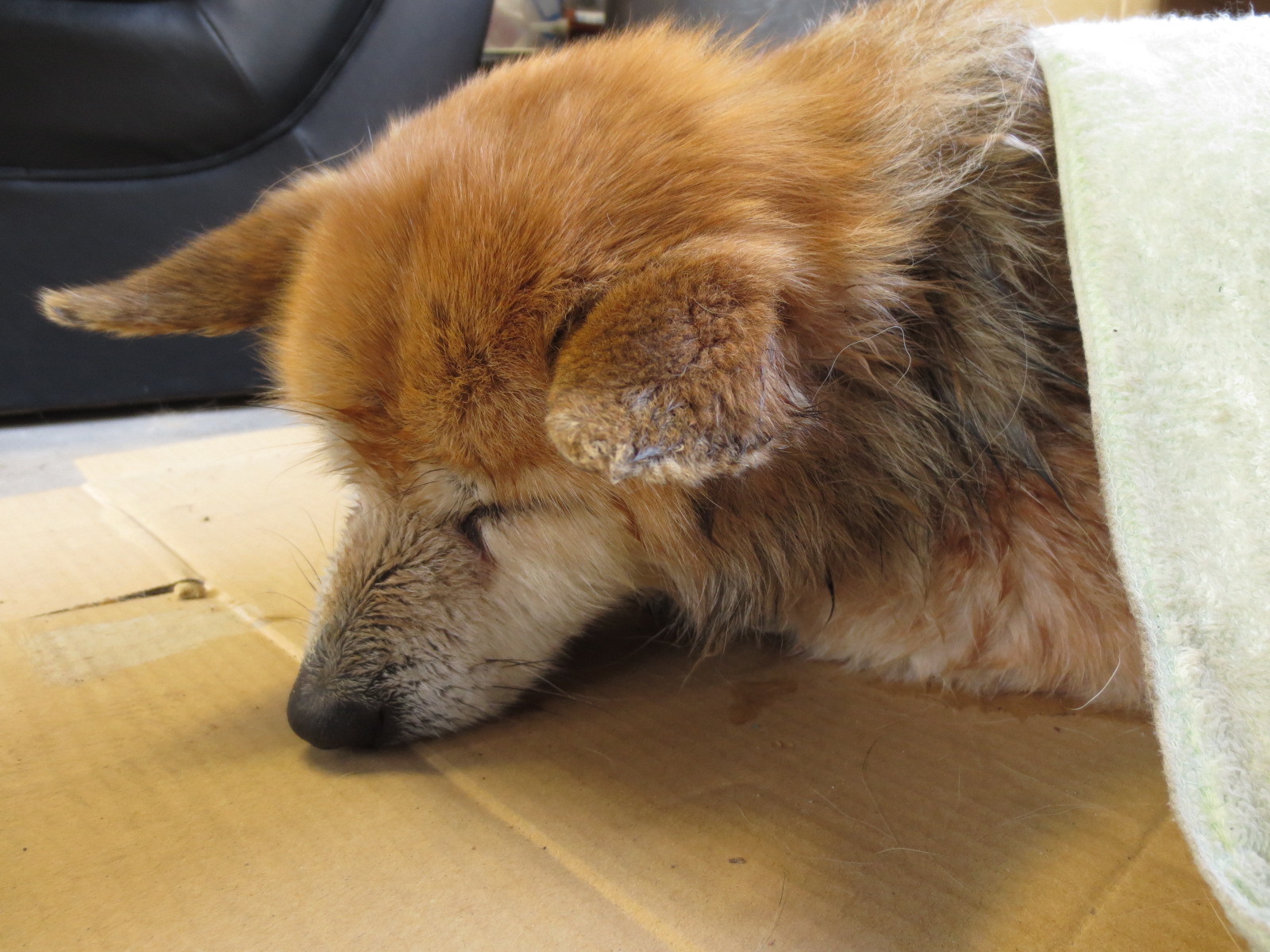 温まってほっとしたのか、とりあえず寝ているのでわかりにくいとは思いますが、